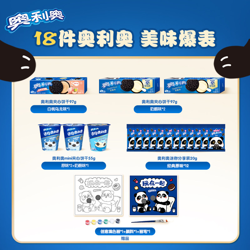 奥利奥熊猫礼盒夹心饼干儿童休闲大礼包送DIY材料小包装分享装
