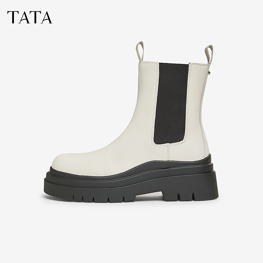 TATA他她英伦厚底切尔西靴登场!真皮材质,经典烟筒靴设计,冬季保暖有型又显高~厚底防滑耐磨,百搭不过时,限时优惠不容错过!