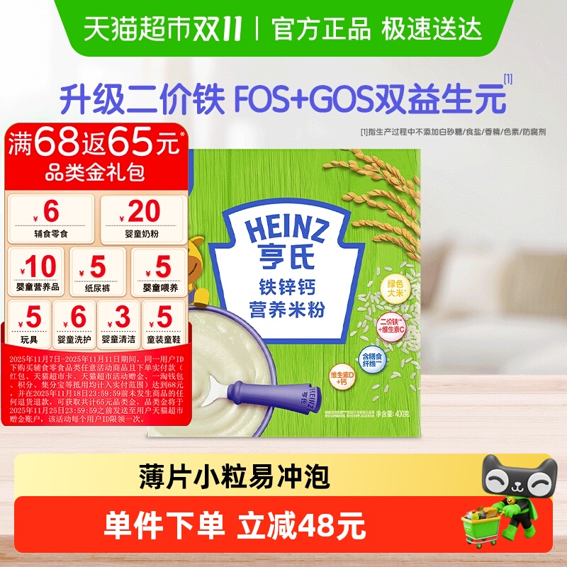亨氏婴幼儿高铁米粉米糊富含铁锌钙不添加盐和糖营养辅食400g单盒 品牌: 亨氏 时间: 2025-11-07 14:50:02 分类: 品牌产品 预计阅读时间: 15秒 亨氏婴幼儿高铁米粉米糊富含铁锌钙不添加盐和糖营养辅食400g单盒¥25.9店铺:亨氏速食旗舰店购买复制口令,打开手机淘宝即可购买。优惠口令:¥ap3AfSgDRzn¥ 点击复制口令亨氏高铁米粉,米糊宝宝婴儿营养辅食,零食铁锌钙,不添加盐和糖。 标签: 营养辅食 ※ 本站产品价格因时效性和折扣政策等因素可能有所波动,请以页面最终价格为准!
