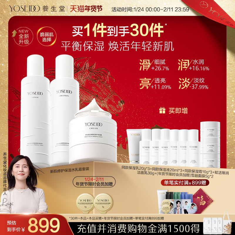 [养生堂] 【新品首发】养生堂白桦新肌修护温和保湿水乳霜礼盒小水乳套装