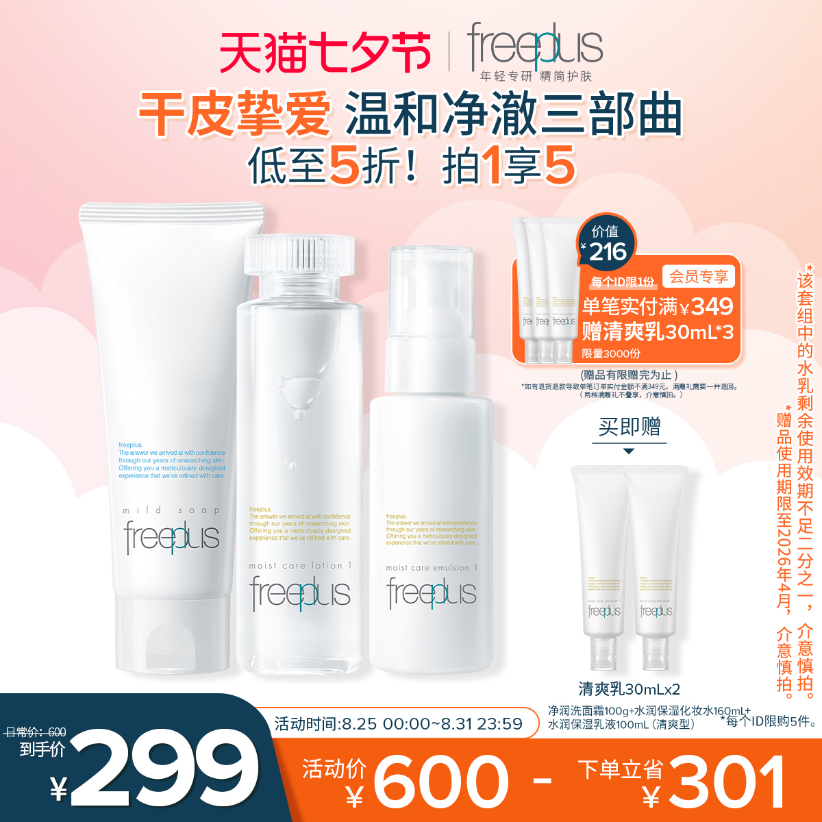 [芙丽芳丝] 七夕礼物freeplus芙丽芳丝洗面奶水乳套装补水洁面护肤化妆水乳液