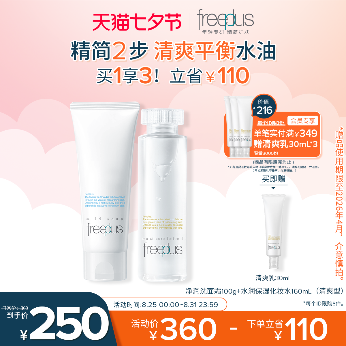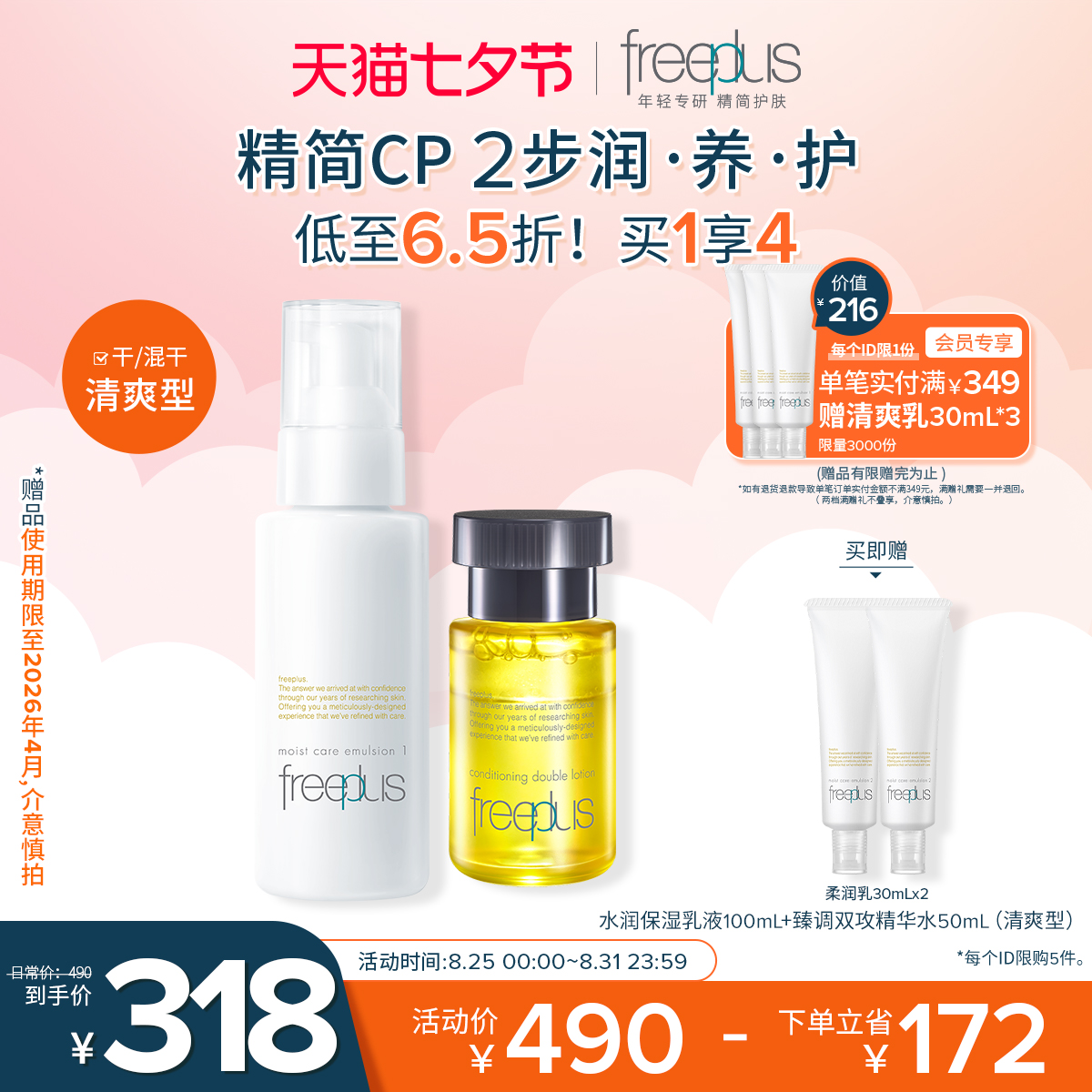 [芙丽芳丝] 七夕礼物freeplus芙丽芳丝水乳套装化妆水乳液补水护肤品爽肤水