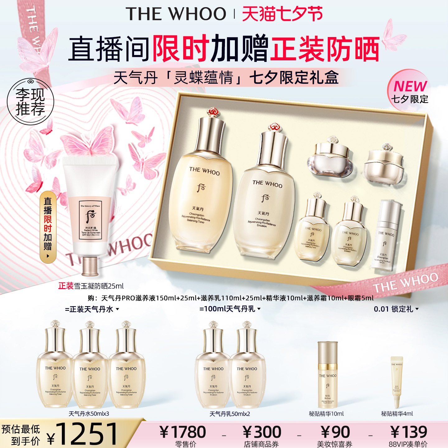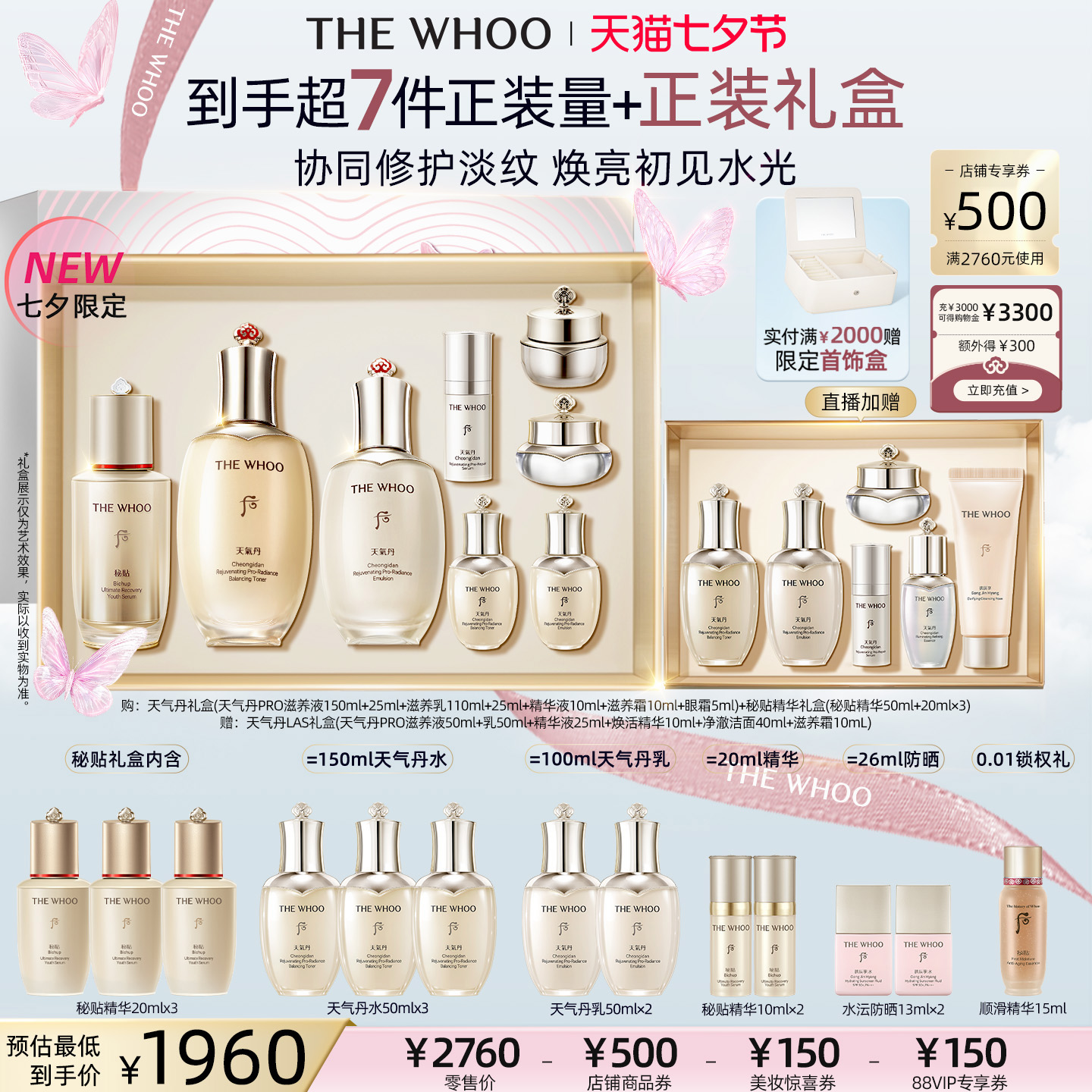 [后] 【七夕礼物】Whoo后天率丹和率提拉保湿紧致护肤水乳套装